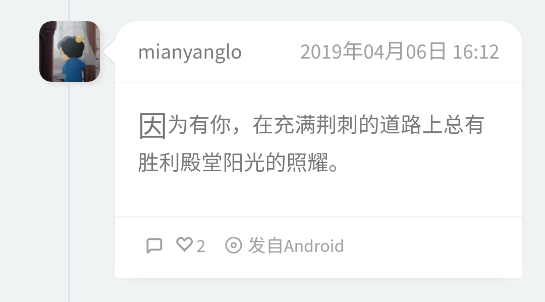 时光机第一条的记录是 因为有你,在充满荆刺的道路上总有胜利殿堂阳光的照耀。