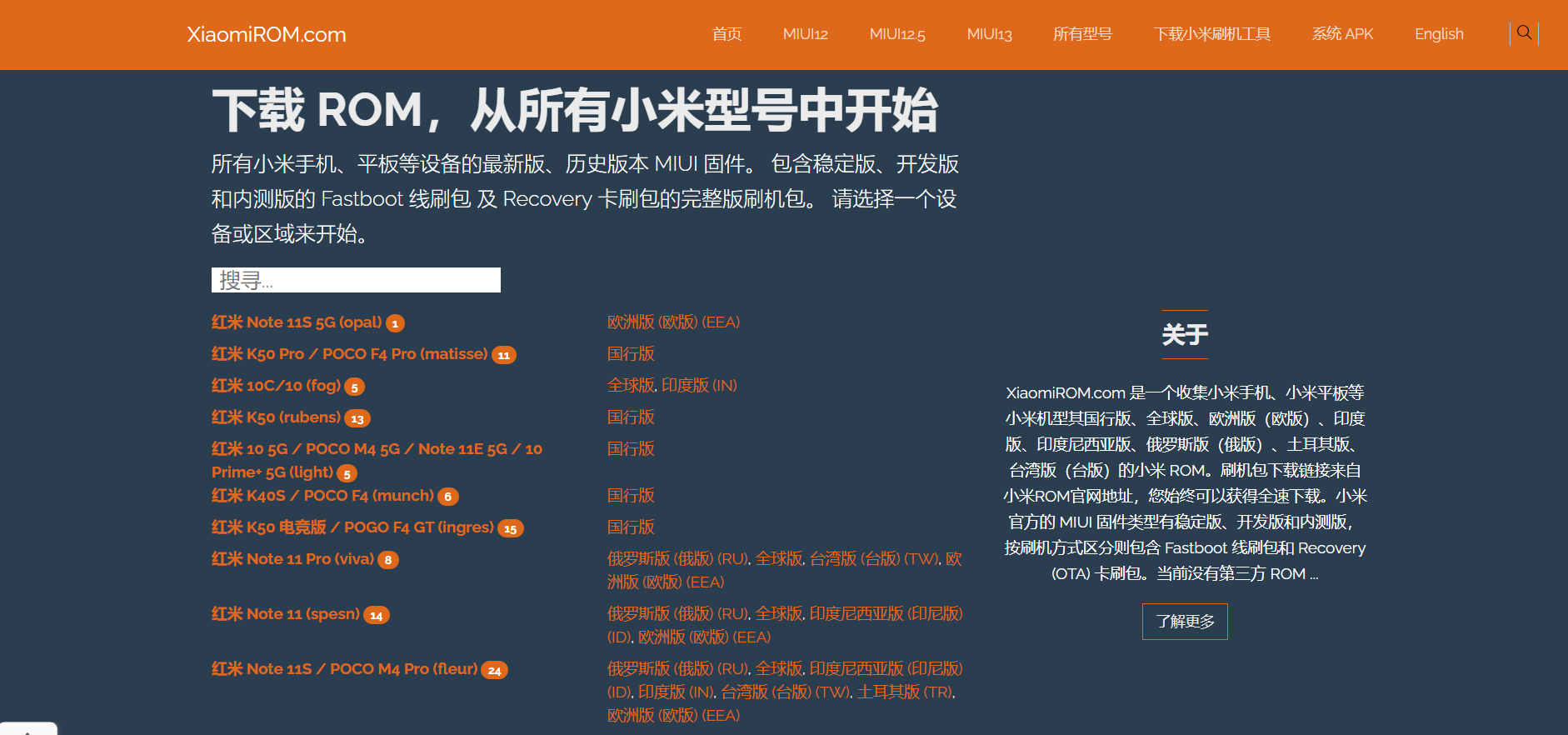 下载 ROM,从所有小米型号中开始