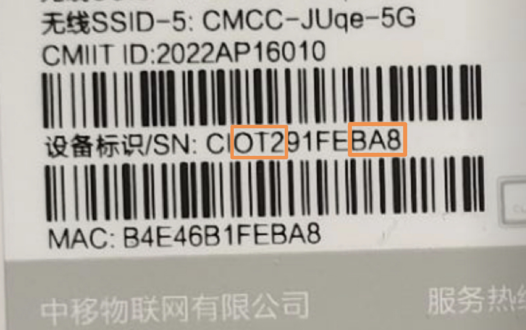 光猫的设备标志(SN)三四五位+8m%+最后三位